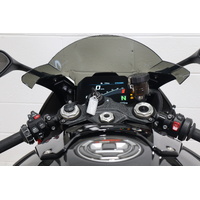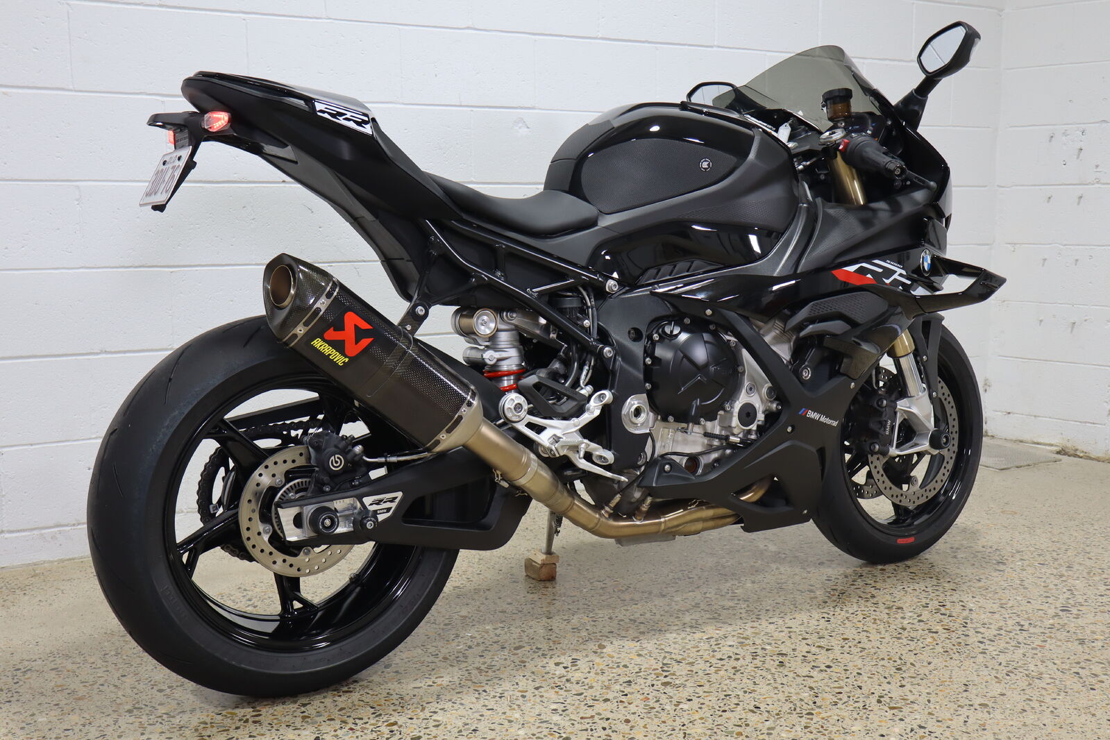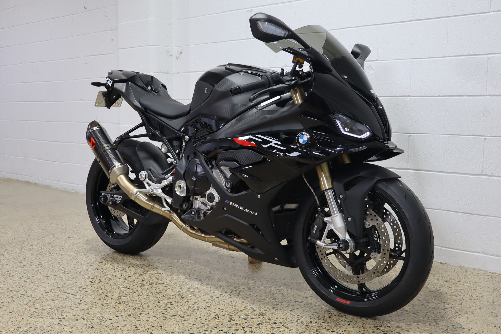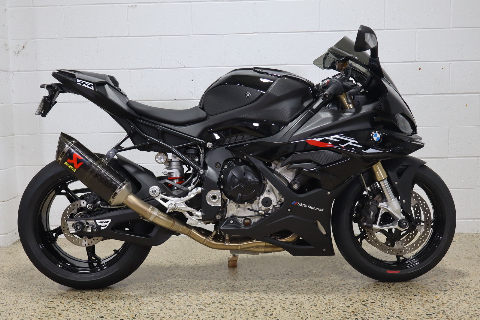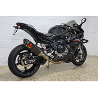 Akrapovic full system titanium carbon muffler, Eazi grip tank protectors and sliders, Evotech pickup knobs and axel protectors, tinted race screen, carbon fibre BMW fuel cap.
