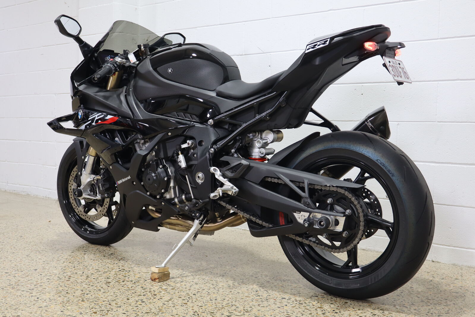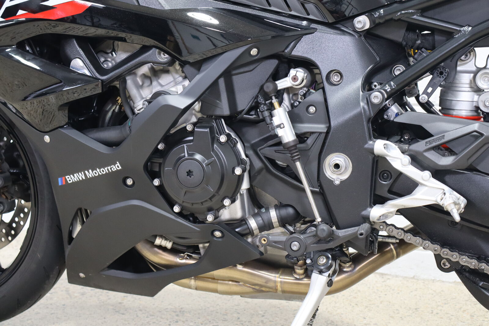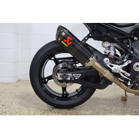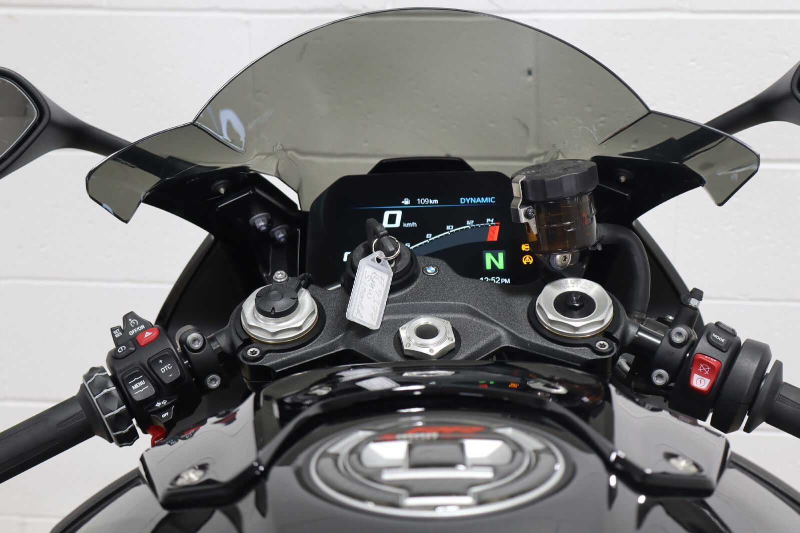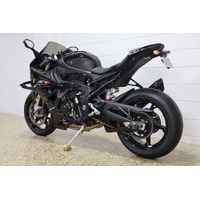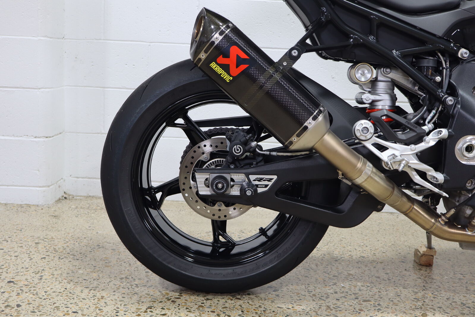 Akrapovic full system titanium carbon muffler, Eazi grip tank protectors and sliders, Evotech pickup knobs and axel protectors, tinted race screen, carbon fibre BMW fuel cap.
