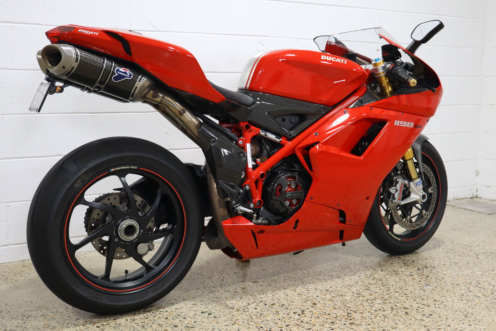 An exceptional 2011 Ducati 1198 SP in iconic Ducati red, a true thoroughbred built for riders who demand raw performance and Italian craftsmanship. Powered by the legendary 1198cc Testastretta Evoluzione engine, the SP delivers explosive power and razor-sharp handling, enhanced by premium Öhlins suspension, forged Marchesini wheels, Ducati Traction Control, and carbon-fiber components throughout. This model represents the pinnacle of Ducati’s superbike era, combining race-bred technology with unmistakable style.