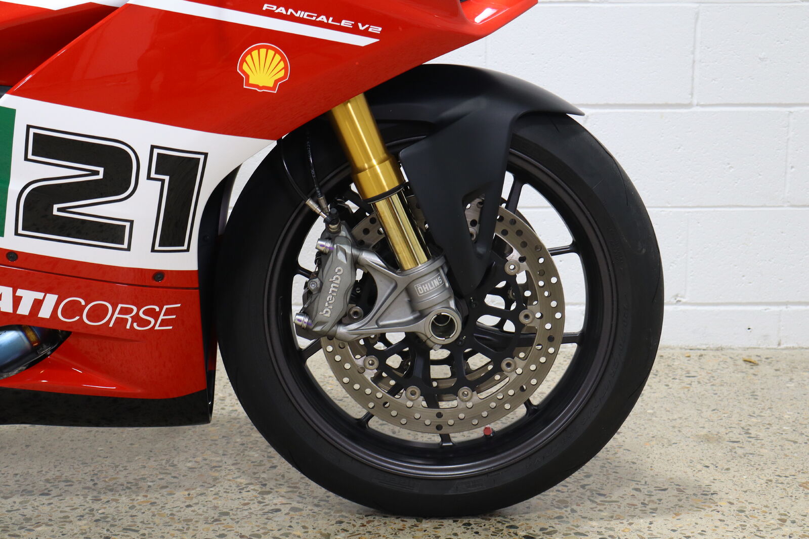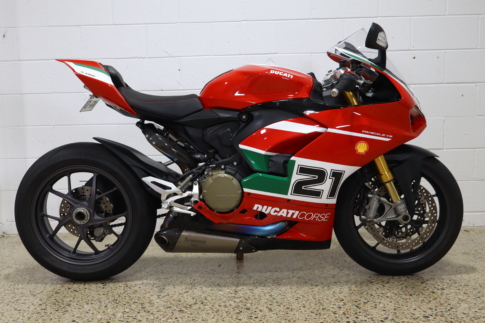 Celebrate racing heritage with the 2022 Ducati Panigale V2 Bayliss 1st Championship 20th Anniversary—a breathtaking tribute to Troy Bayliss and his legendary 2001 world title. Featuring Öhlins suspension, a lightweight chassis, advanced electronics, and the thrilling Superquadro engine, it delivers razor-sharp handling and exhilarating power on both road and track. With exclusive Bayliss graphics, embroidered seat, and numbered detailing, this is more than a motorcycle—it’s a collector’s masterpiece built to be ridden and admired.