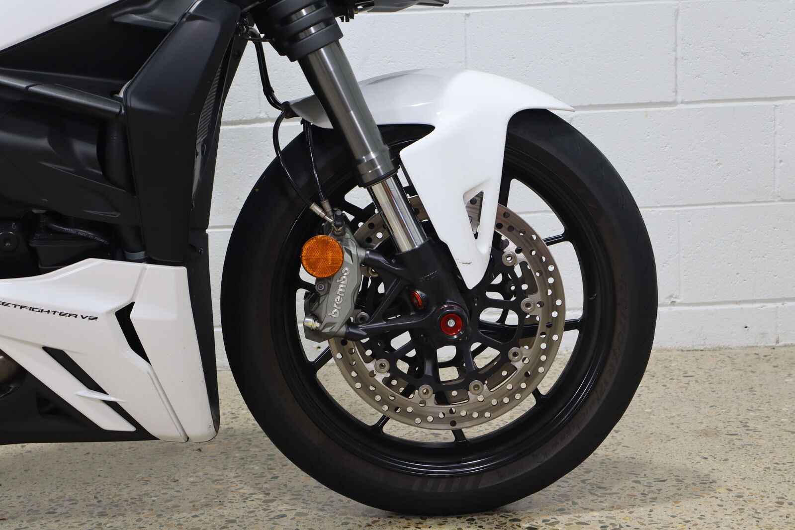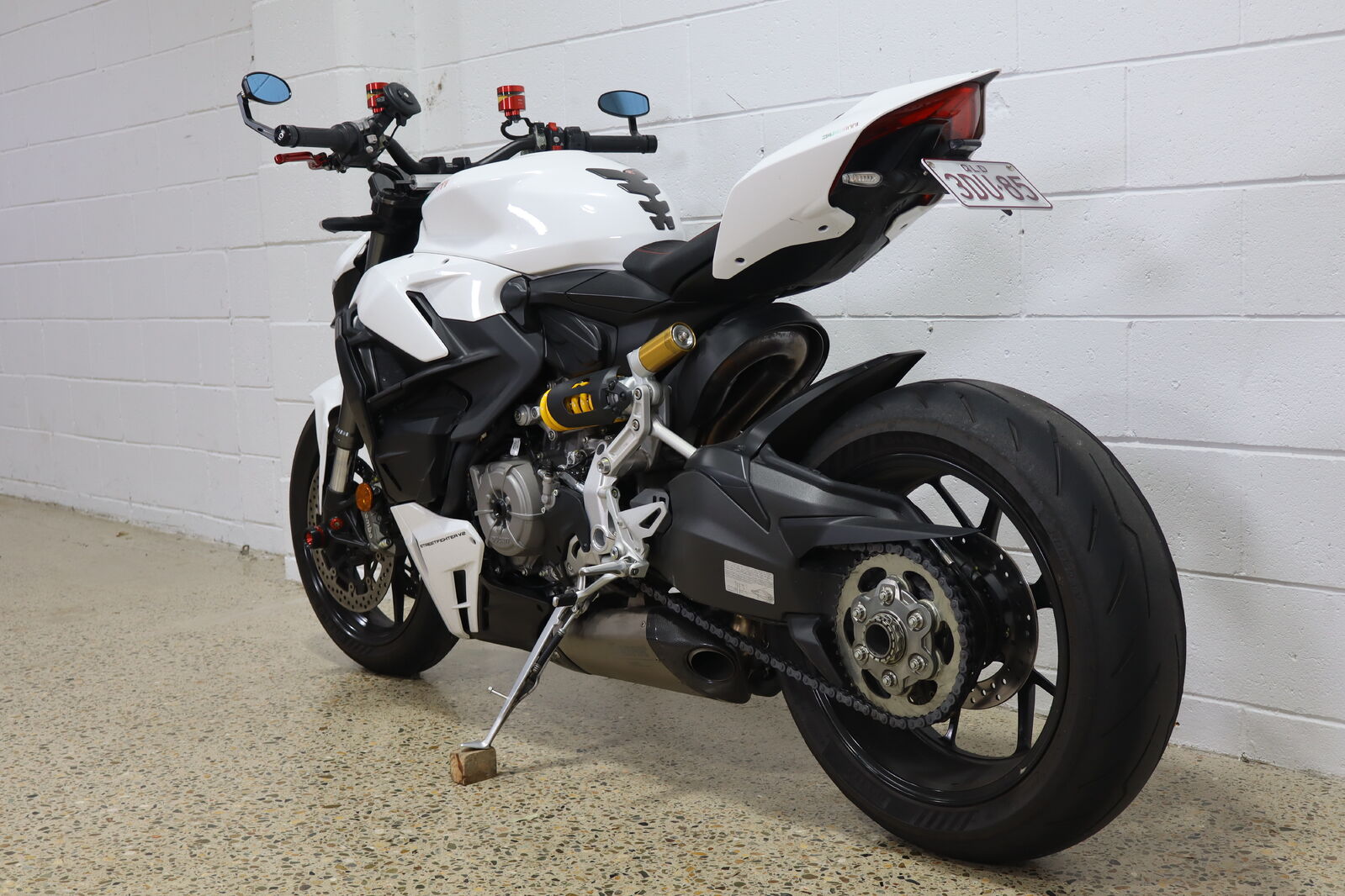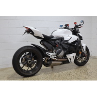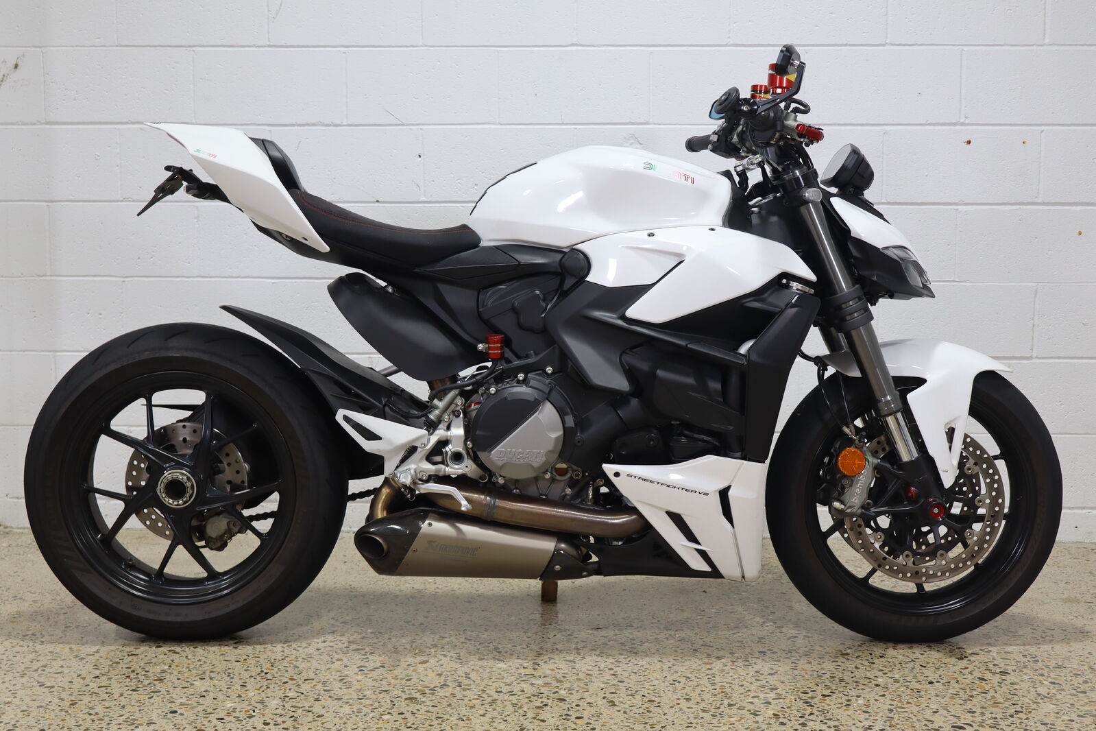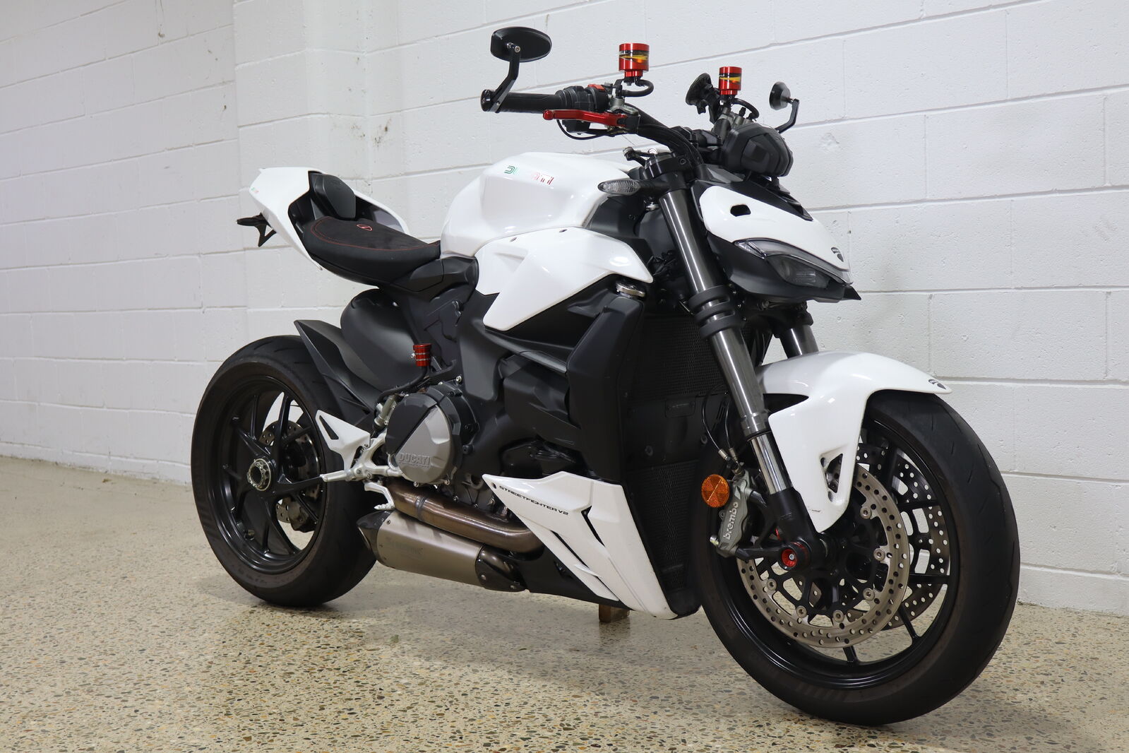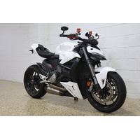 Unleash pure Italian performance with this 2023 Ducati Streetfighter V2 in stunning white, a naked sportbike that blends superbike DNA with aggressive street presence. Powered by Ducati’s thrilling Superquadro engine, it delivers razor-sharp throttle response, explosive acceleration, and an unmistakable soundtrack. Advanced rider aids, a lightweight chassis, and premium components ensure precision handling and confidence at any speed.