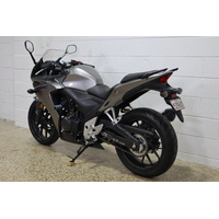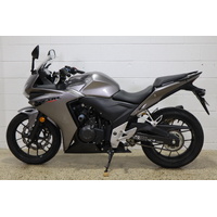 The 2015 Honda CBR500R in Grey is the perfect blend of everyday practicality and sporty performance, wrapped in sleek, aggressive styling. Powered by a smooth and efficient 471cc parallel-twin engine, it offers the ideal balance of power and control for both new riders and seasoned commuters. With its aerodynamic fairings, comfortable riding position, and legendary Honda reliability, the CBR500R is built to handle city streets and weekend twists with equal confidence. In its stealthy grey finish, this midsize sportbike proves that style and substance can ride side by side.