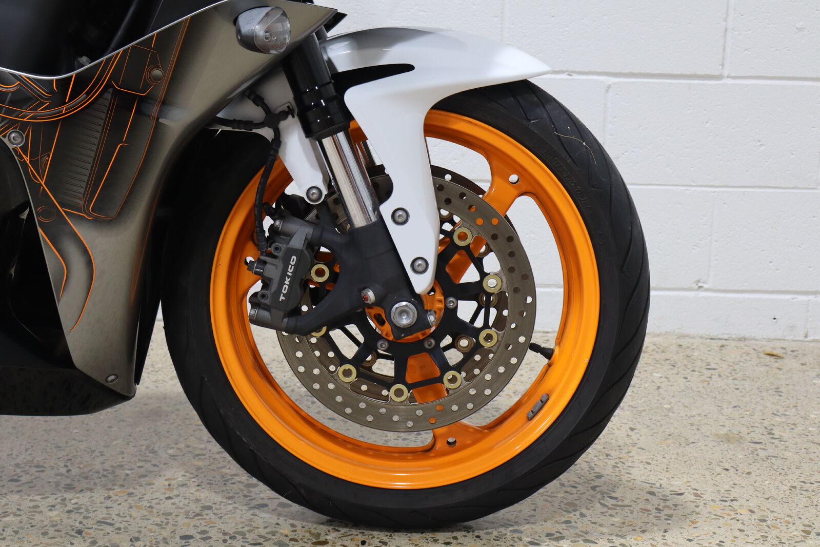 2011 Honda CBR600RR finished in a rare silver paint scheme with bold orange accents. This middleweight supersport delivers the perfect blend of razor-sharp handling, lightweight agility, and Honda’s legendary reliability. The 600cc engine is smooth, responsive, and built to thrill. Well-maintained and ready for its next rider, this CBR600RR is an ideal choice for anyone looking for performance, style, and dependable engineering in one stunning package.