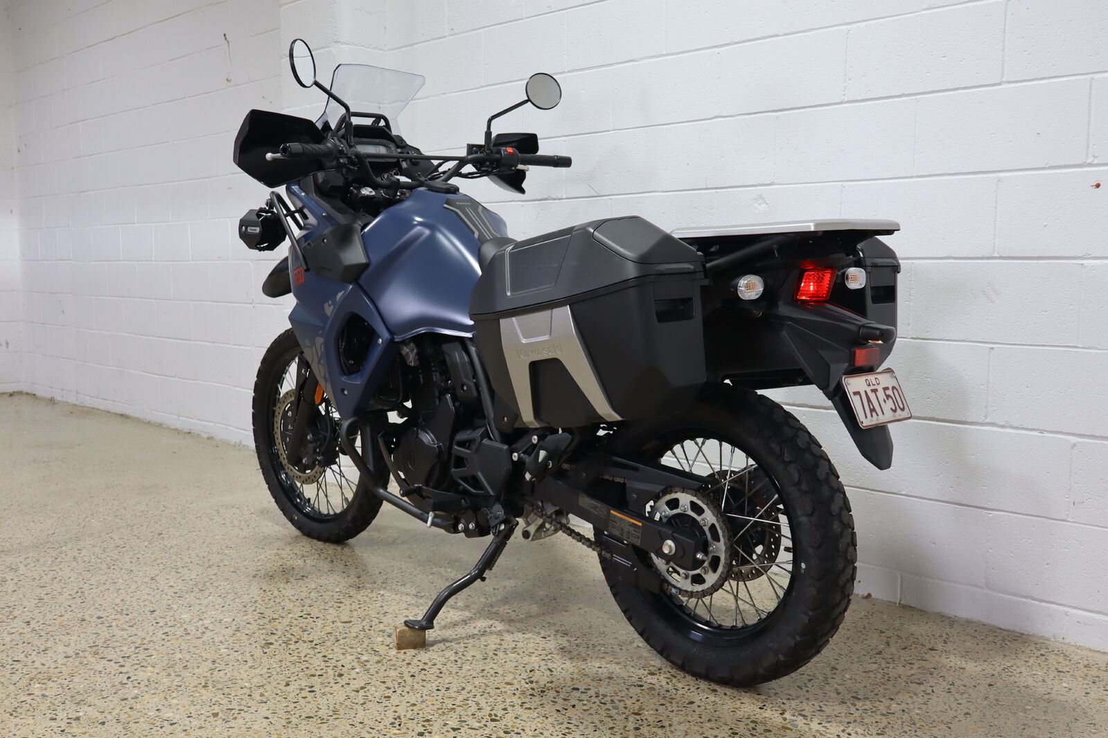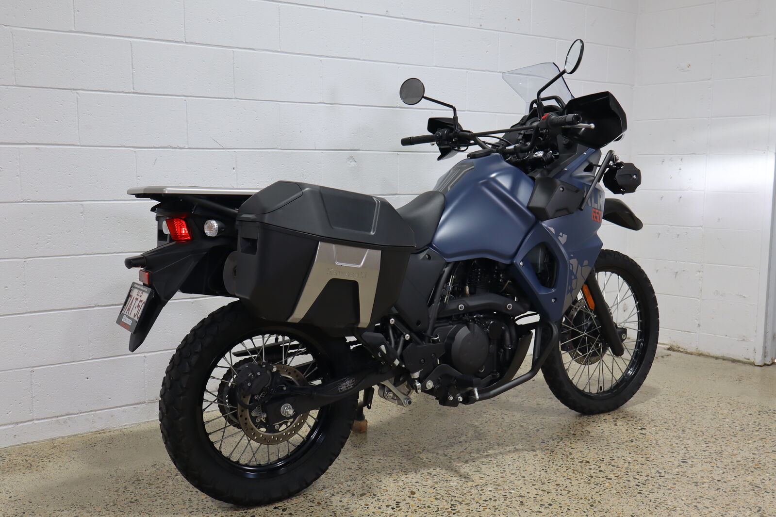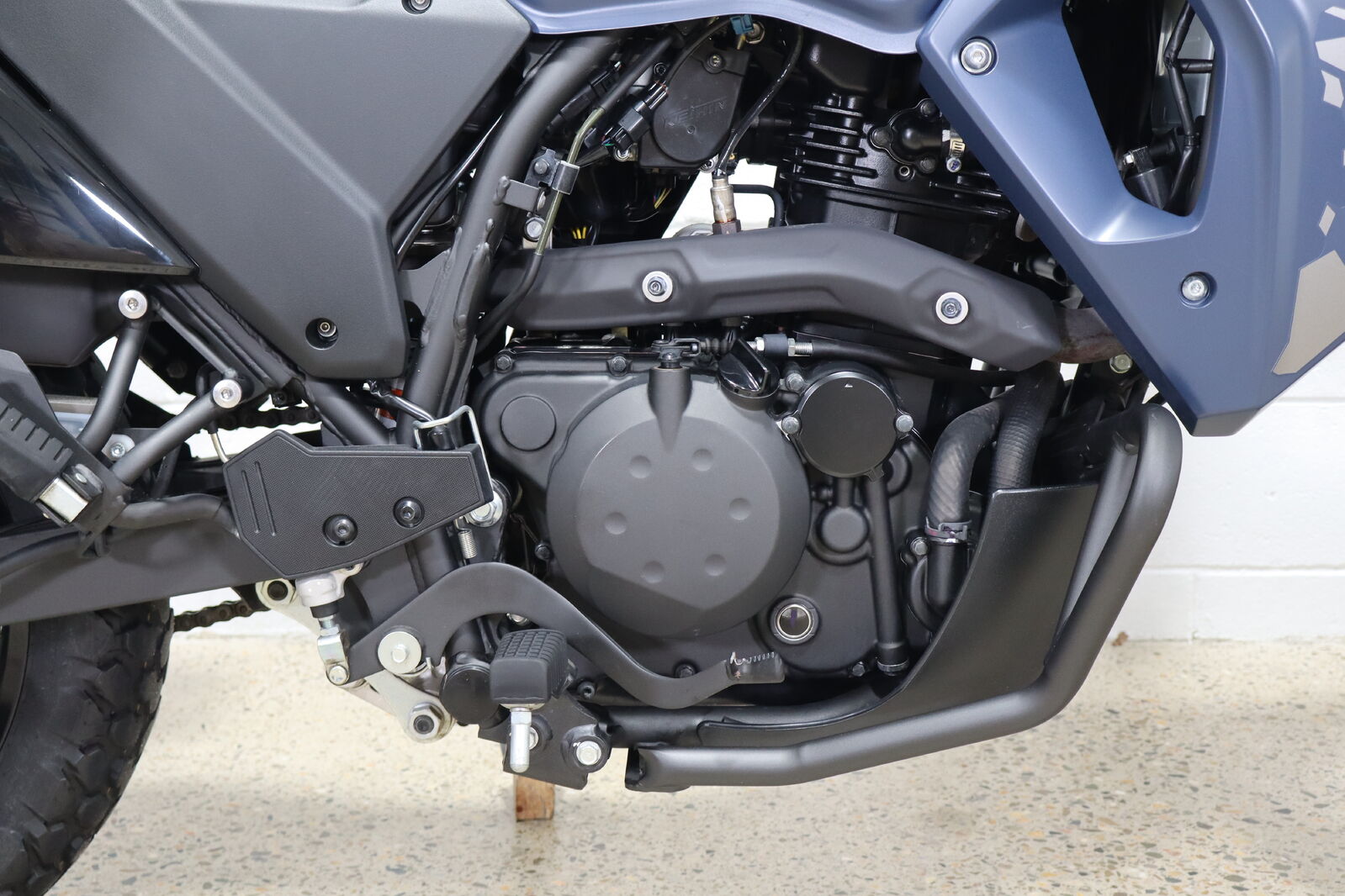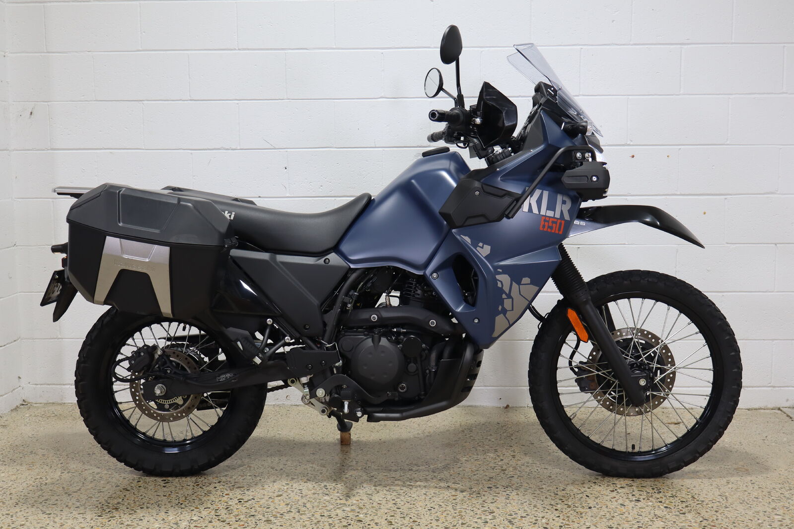 The 2024 Kawasaki KLR650 in bold blue is the ultimate companion for riders who crave adventure without limits. Powered by a dependable 652cc single-cylinder engine, it delivers rugged performance, impressive fuel efficiency, and the versatility to tackle pavement, gravel, and dirt with equal confidence. Its durable build, comfortable ergonomics, and ample luggage capacity make it ideal for long-distance touring or weekend escapes. Built to go the distance and explore the unknown, the KLR650 embodies the spirit of adventure — simple, reliable, and ready for anything.