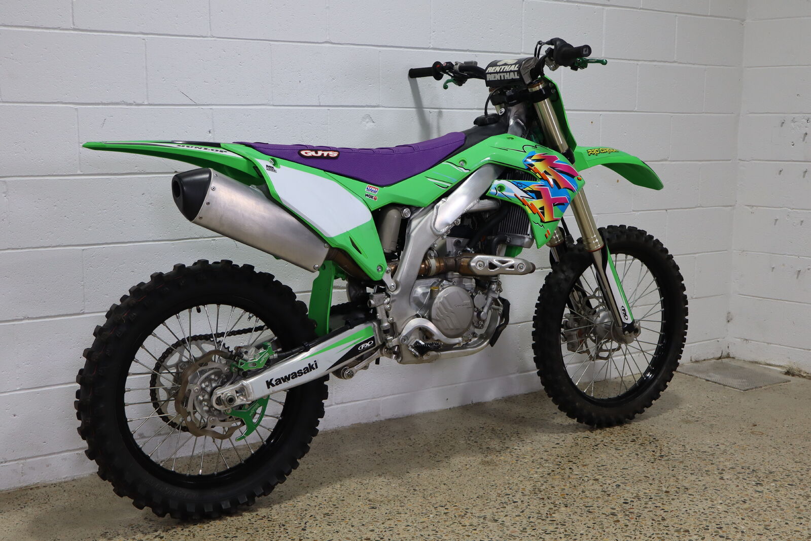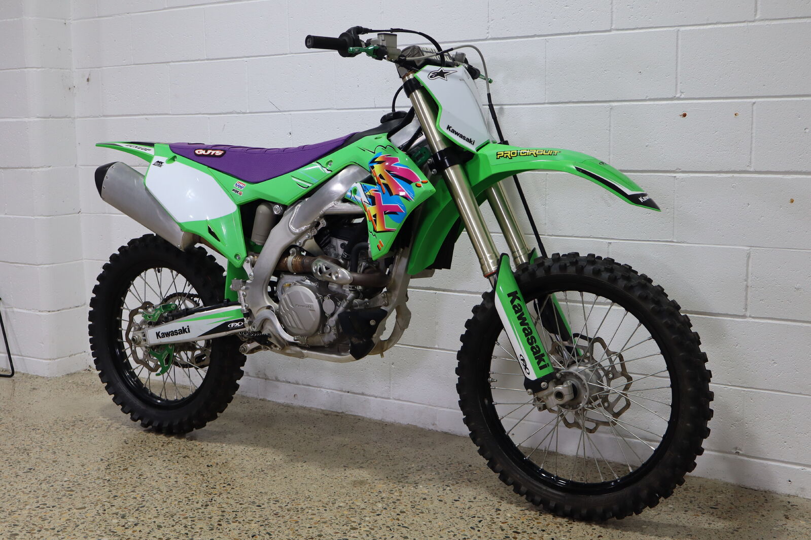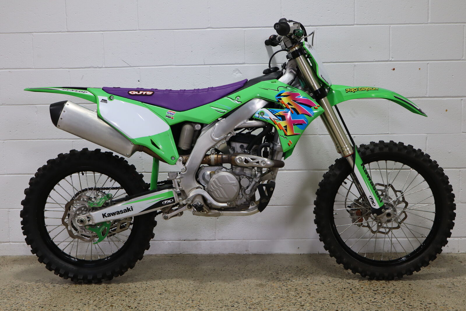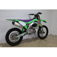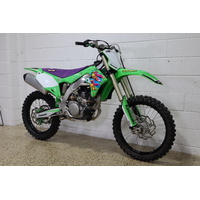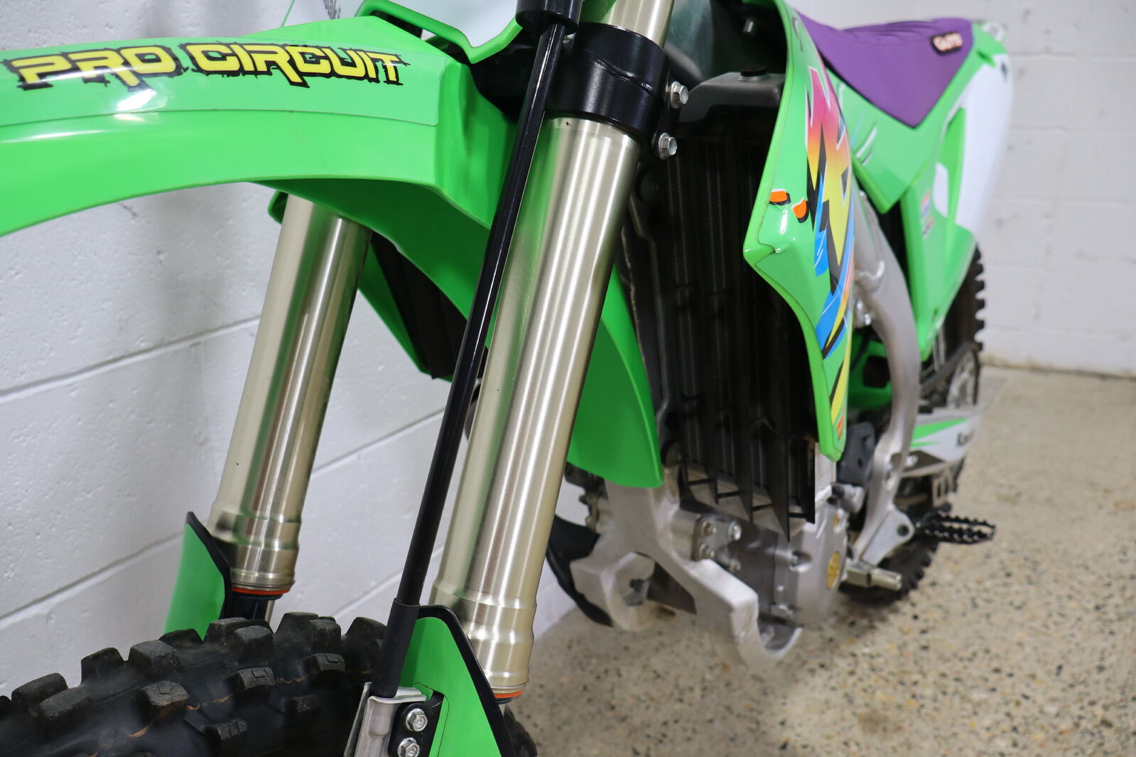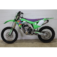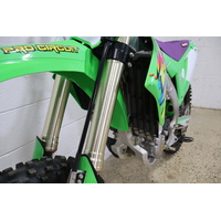 The Kawasaki KX250 (KX250A) with its signature green bodywork and striking purple seat is a modern motocross weapon with unmistakable retro flair. Built for serious racers, it features a high-performance 249cc four-stroke engine, race-tuned suspension, and lightweight chassis geometry that delivers sharp, responsive handling on any track. From the gate drop to the checkered flag, the KX250 is pure performance—wrapped in iconic style.