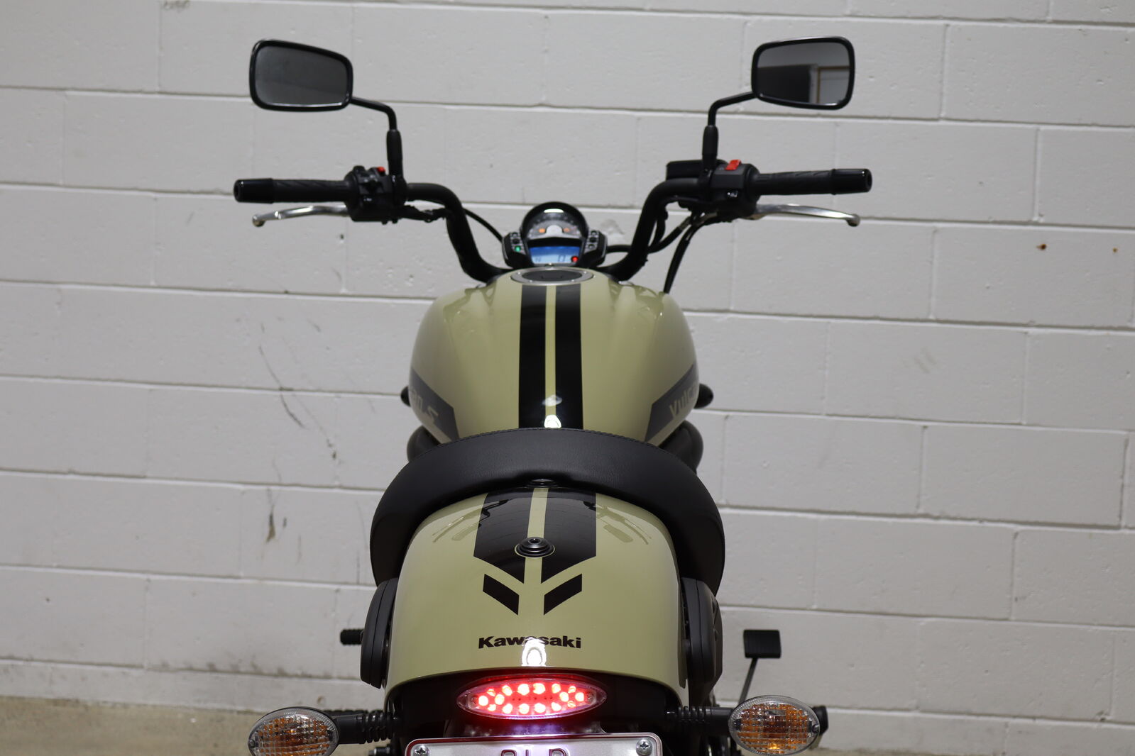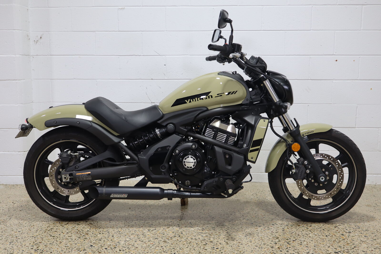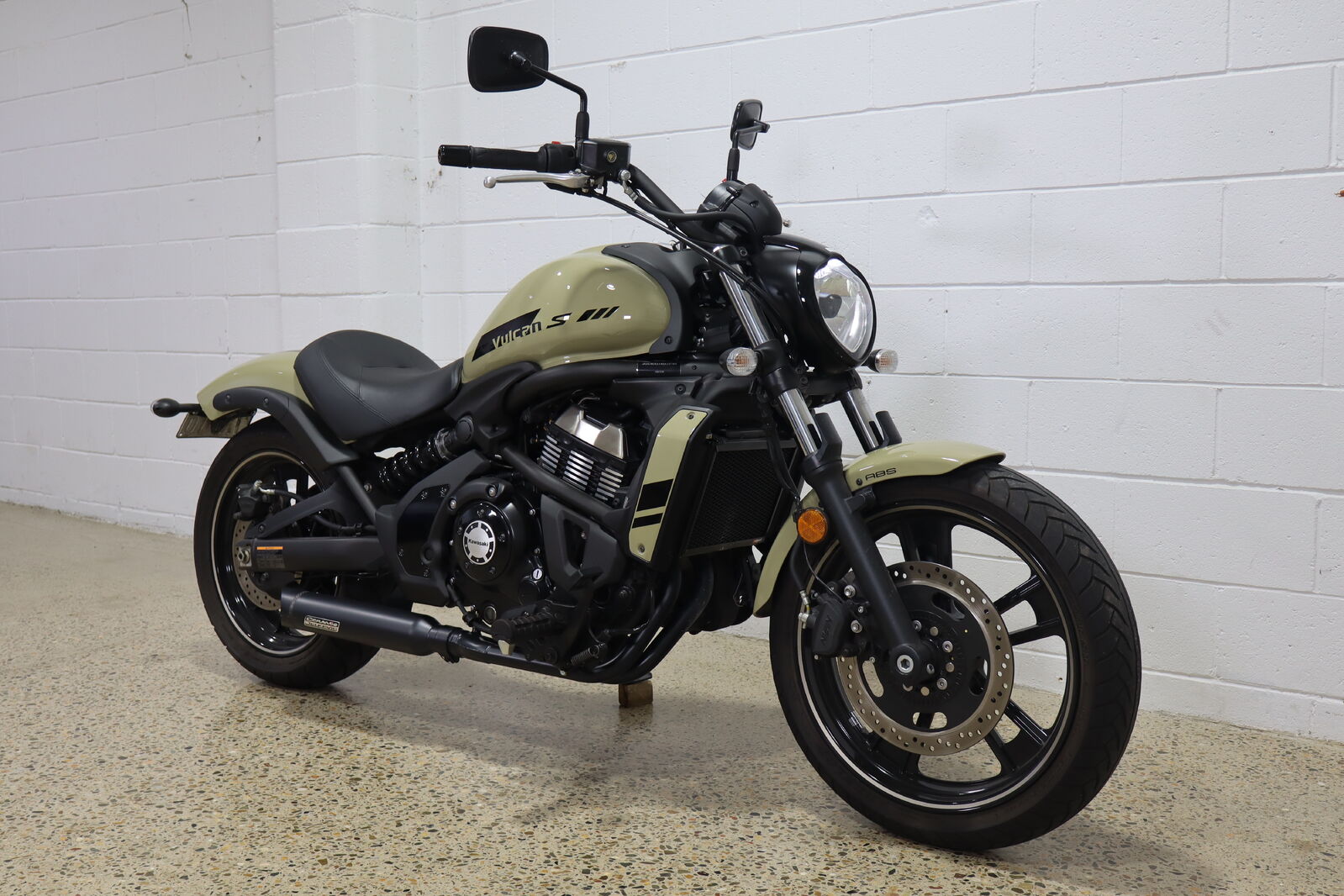 Experience effortless cruising with the 2023 Kawasaki Vulcan S ABS (EN650) in rugged khaki — the perfect blend of style, comfort, and accessible performance. Designed for riders who want laid-back confidence and everyday versatility, this cruiser delivers smooth torque from its refined parallel-twin engine and a relaxed riding position that makes every journey a pleasure. The khaki finish, accented with bold details, gives the Vulcan S a distinctive presence that stands out without shouting — rugged, refined, and ready for the open road.