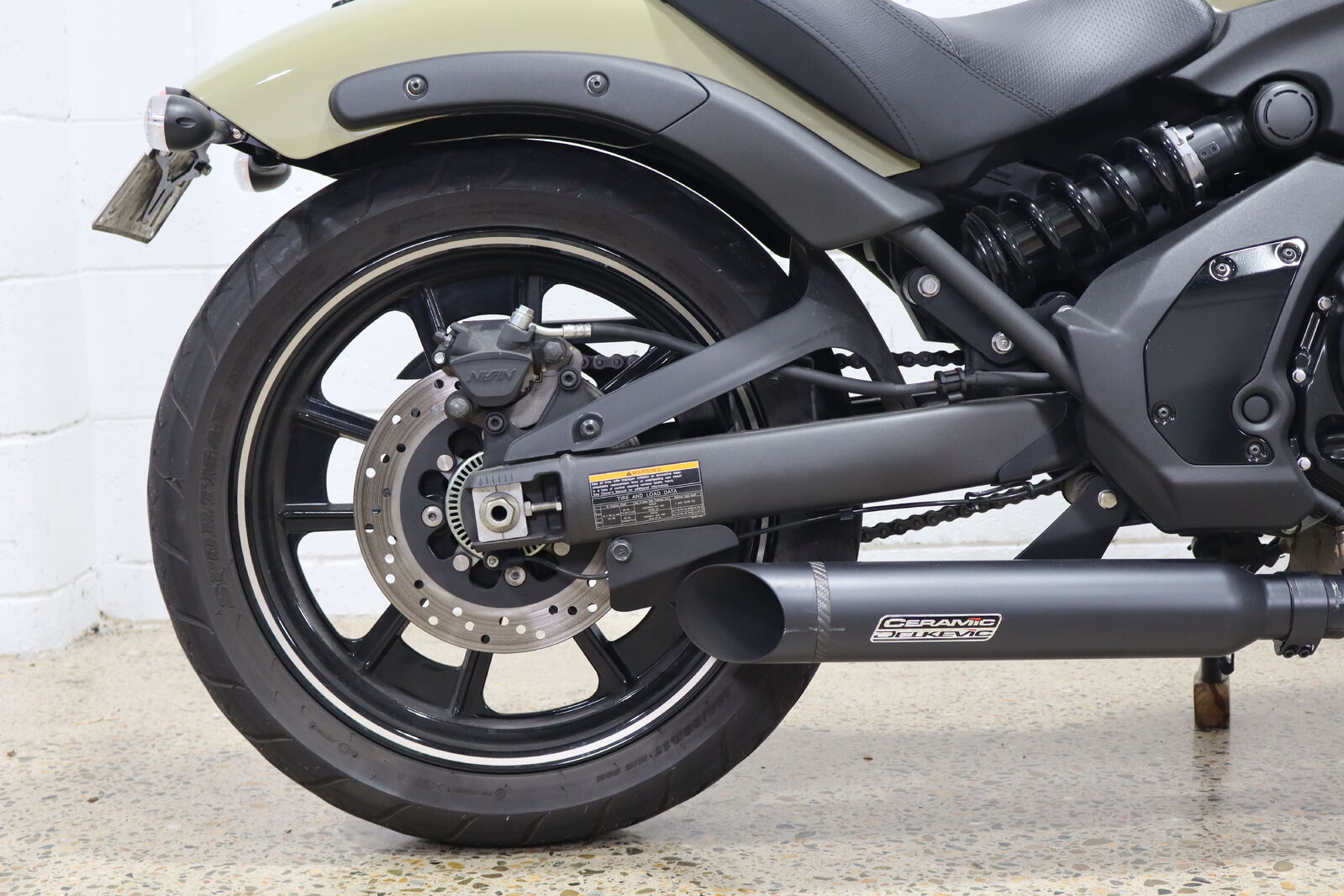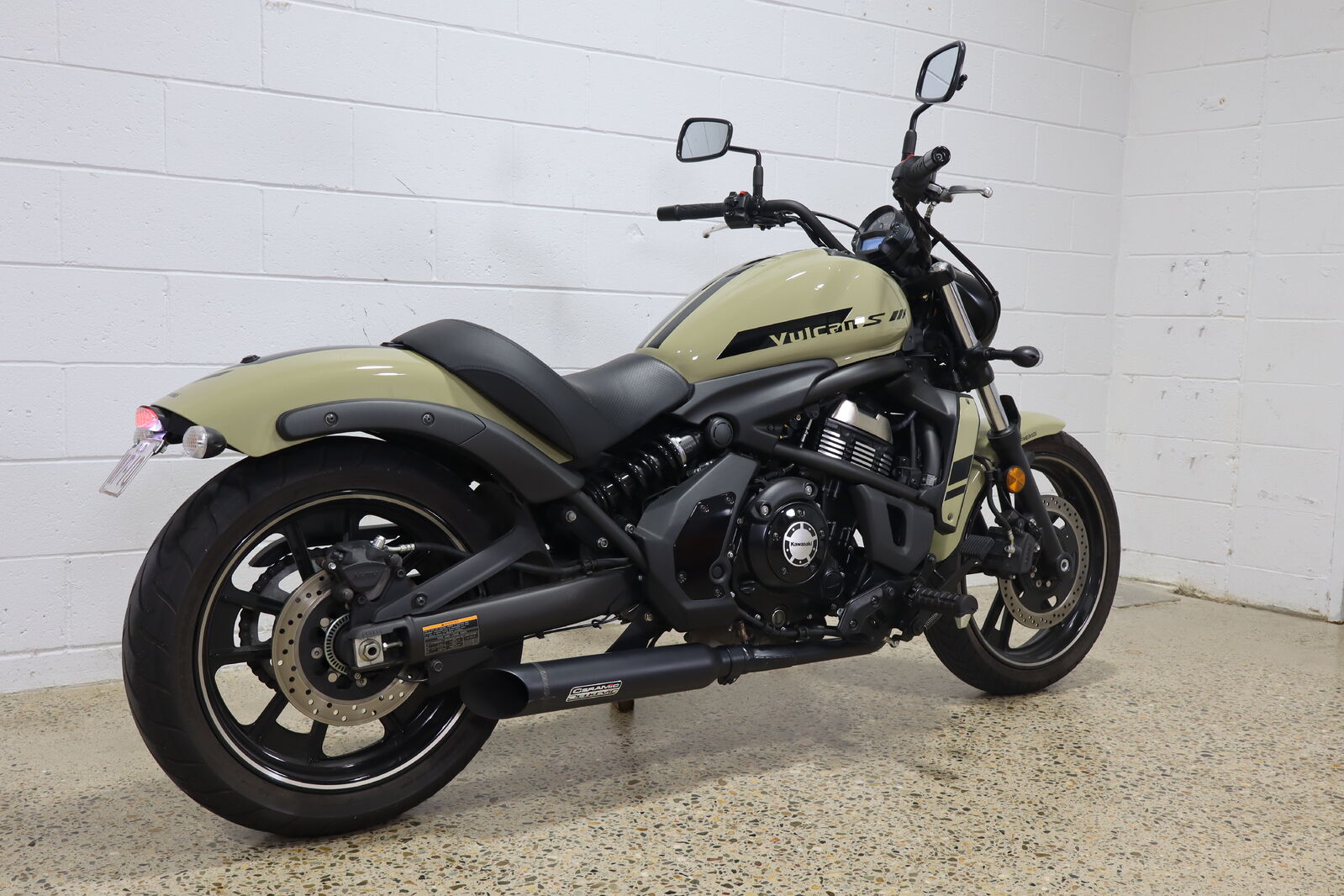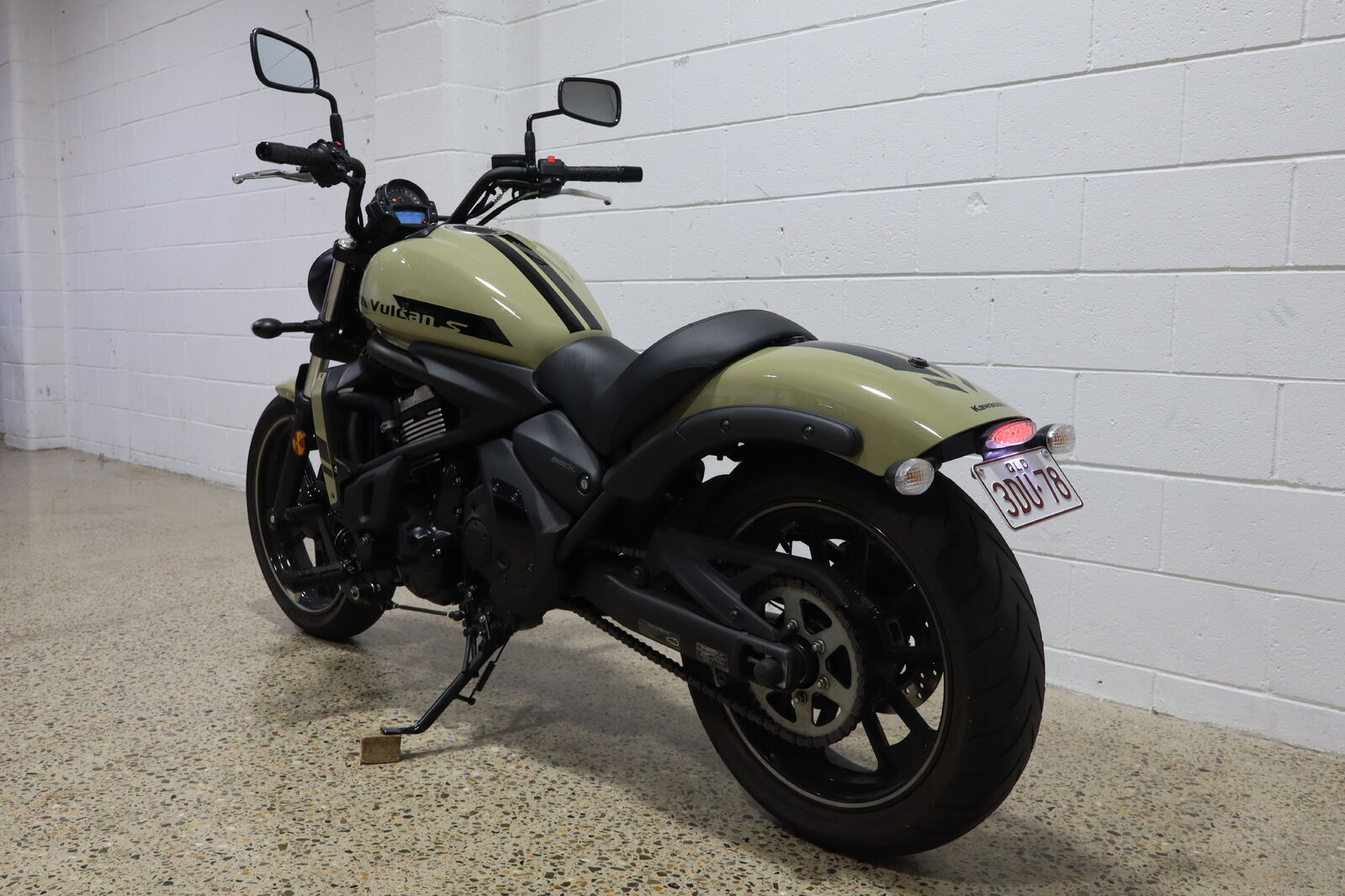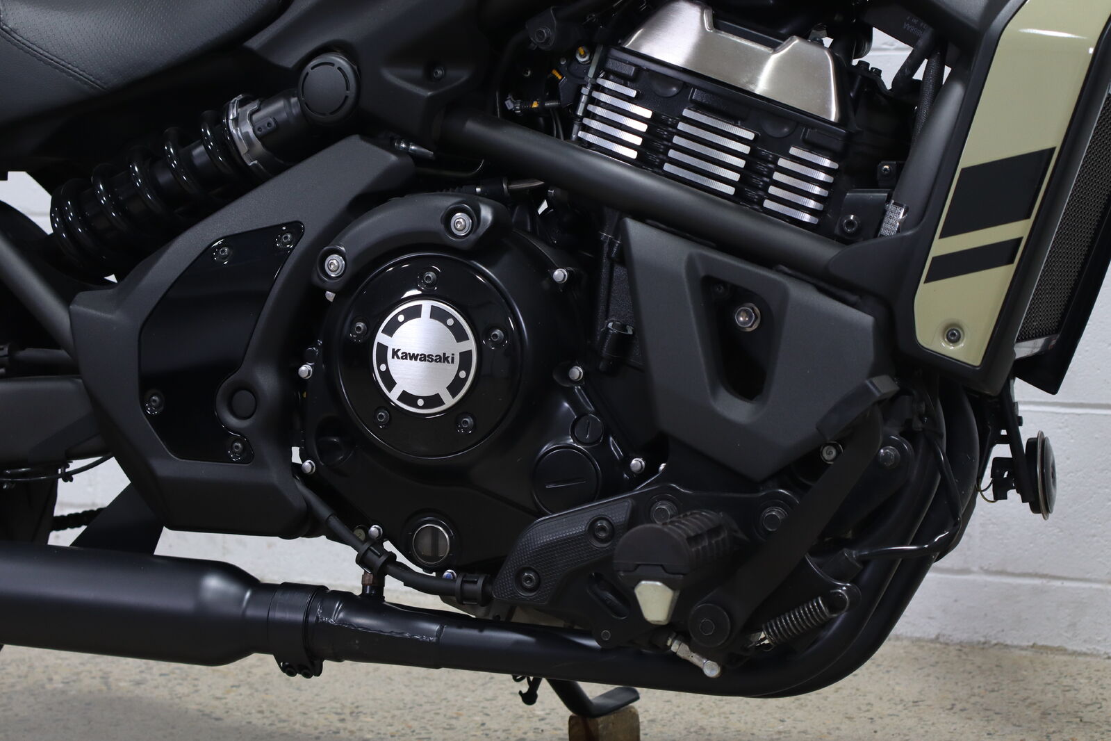 Experience effortless cruising with the 2023 Kawasaki Vulcan S ABS (EN650) in rugged khaki — the perfect blend of style, comfort, and accessible performance. Designed for riders who want laid-back confidence and everyday versatility, this cruiser delivers smooth torque from its refined parallel-twin engine and a relaxed riding position that makes every journey a pleasure. The khaki finish, accented with bold details, gives the Vulcan S a distinctive presence that stands out without shouting — rugged, refined, and ready for the open road.