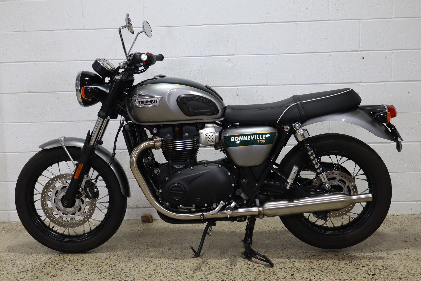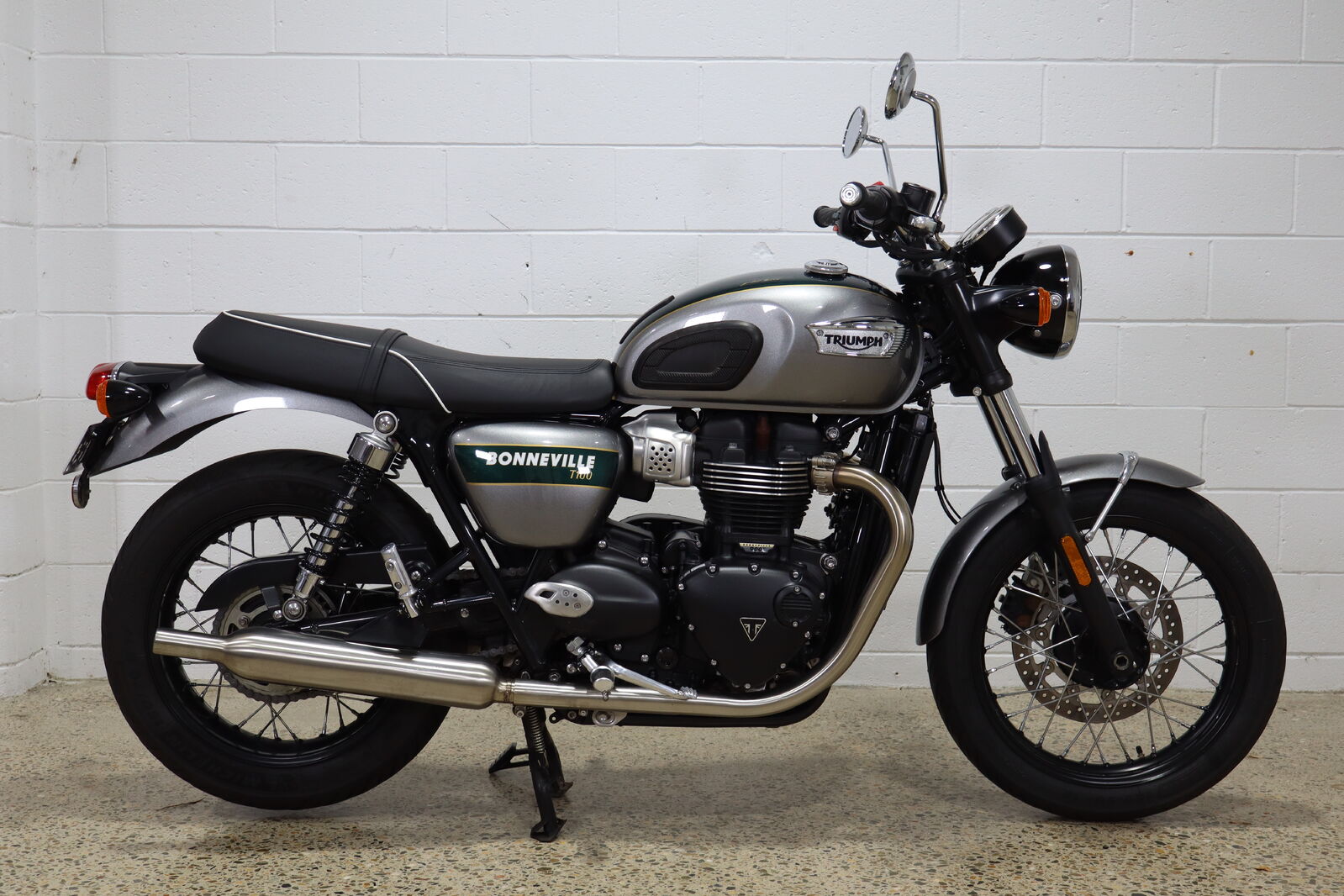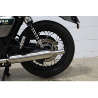 Celebrate true motorcycling artistry with the stunning 2022 Triumph Bonneville T100 Gold Line — finished in an exquisite green and silver paint scheme, beautifully hand-lined in gold. This limited-edition classic fuses timeless British design with modern performance, powered by a punchy 900cc twin that delivers smooth, responsive torque and an unmistakable exhaust note. The Gold Line’s elegant detailing, from its gleaming tank to its flawless chrome accents, makes it as breathtaking to look at as it is thrilling to ride!
