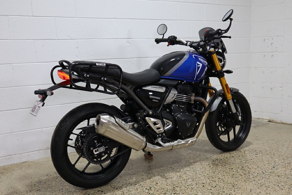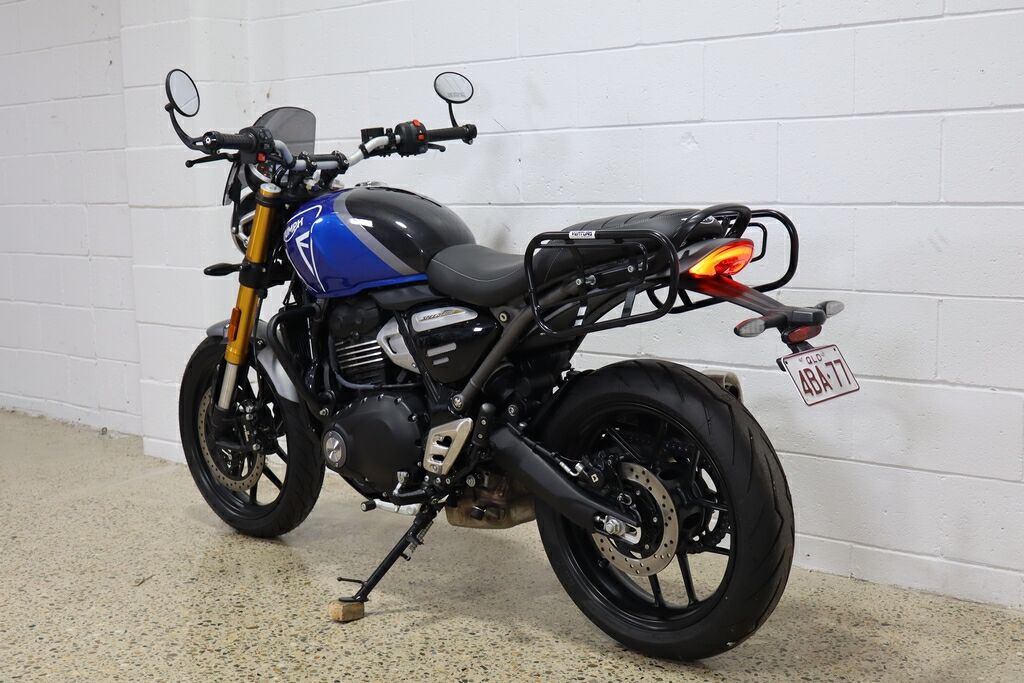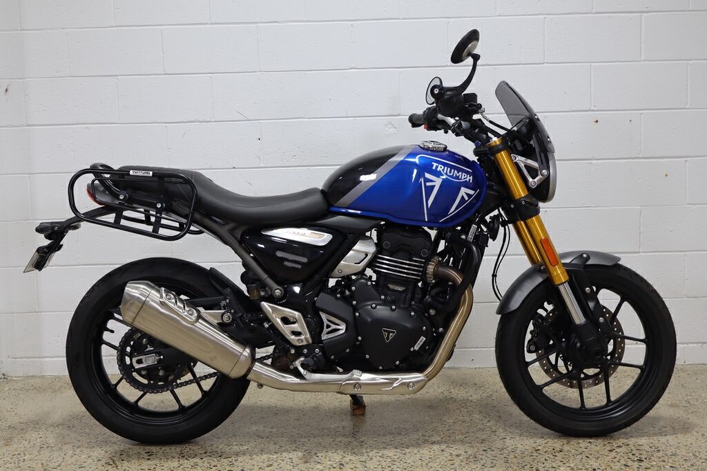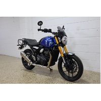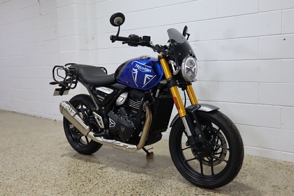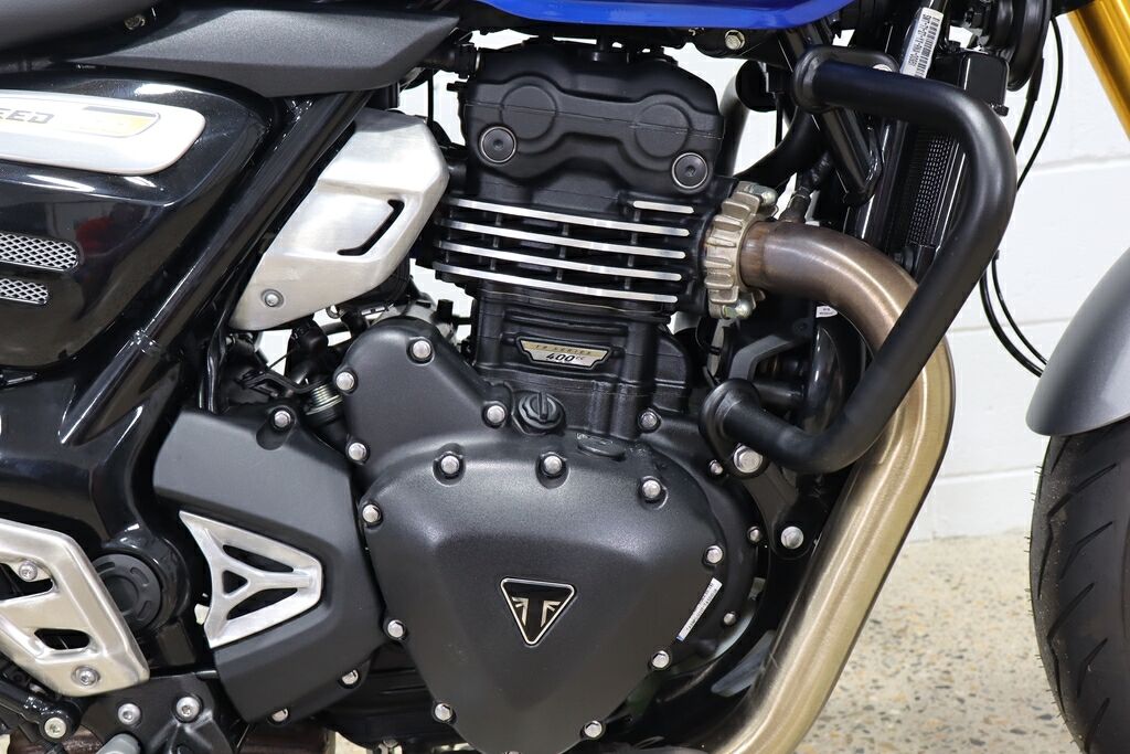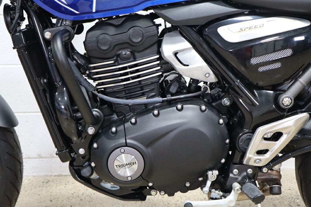 The 2024 Triumph Speed 400 Blue brings timeless British style and modern performance together in a compact, punchy package. Powered by an all-new 398cc single-cylinder engine, it delivers responsive torque, precise handling, and everyday usability—all wrapped in classic Triumph design with a striking blue finish. Lightweight, agile, and packed with premium details, the Speed 400 is built for riders who want character, confidence, and fun in every ride. Big-bike feel, small-bike freedom—this is pure Triumph, distilled.