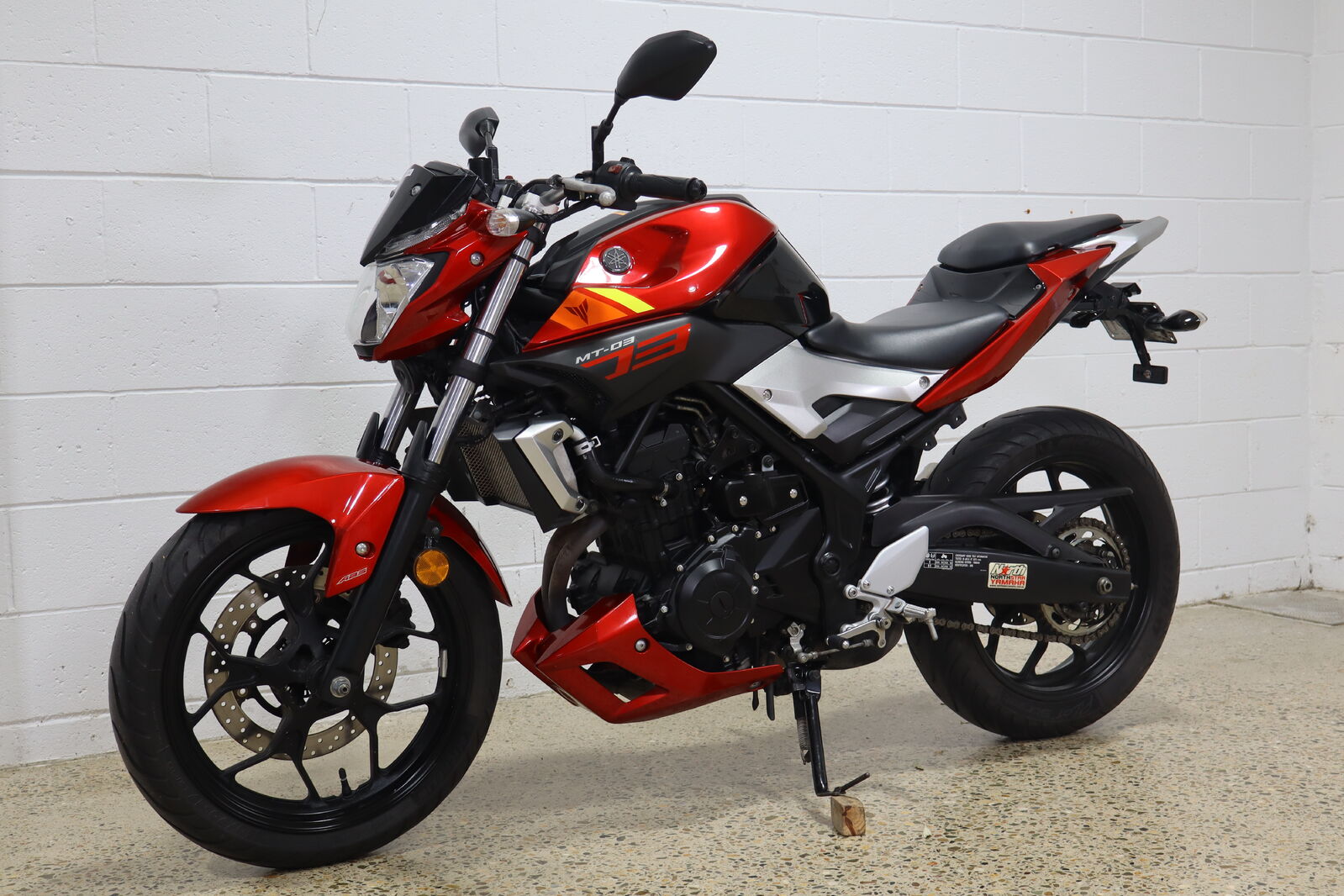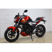 Turn heads with this 2016 Yamaha MT-03 ABS 321 (MT03LA) in striking red, a naked bike that delivers big attitude in a lightweight, rider-friendly package. Powered by Yamaha’s punchy 321cc parallel-twin engine, it offers smooth, responsive performance perfect for city riding and weekend fun. With ABS for added confidence, agile handling, and aggressive MT styling, this MT-03 is as practical as it is exciting—an ideal choice for riders wanting reliability, style, and everyday versatility with a sporty edge.